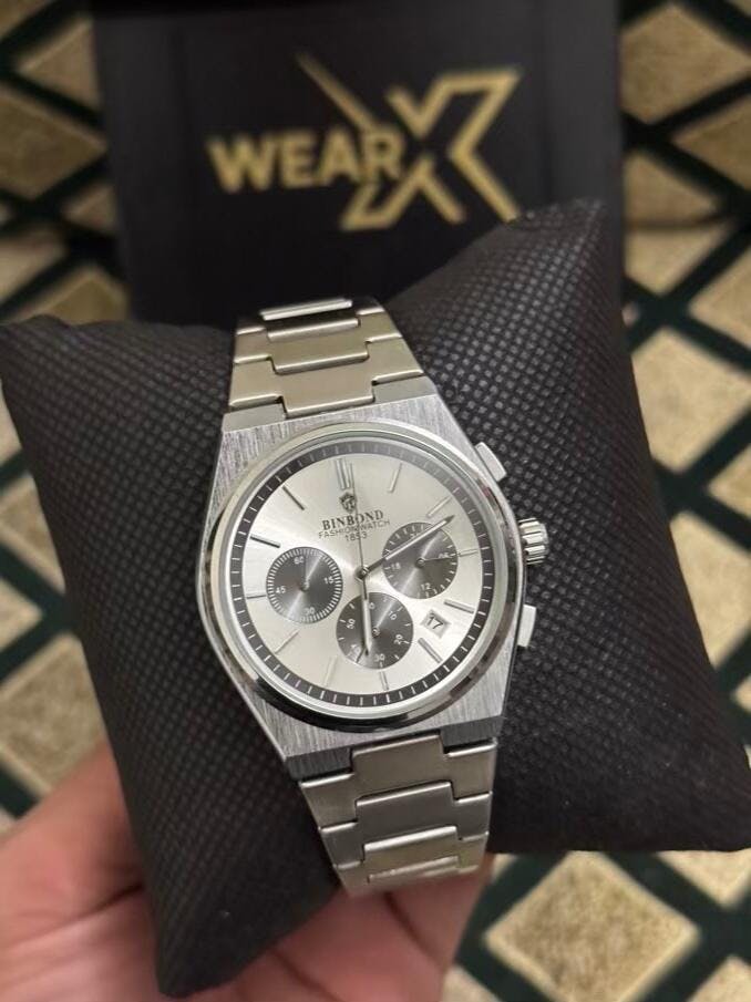 Silver With White Dail Chronograph-Waterproof Watch TS-06